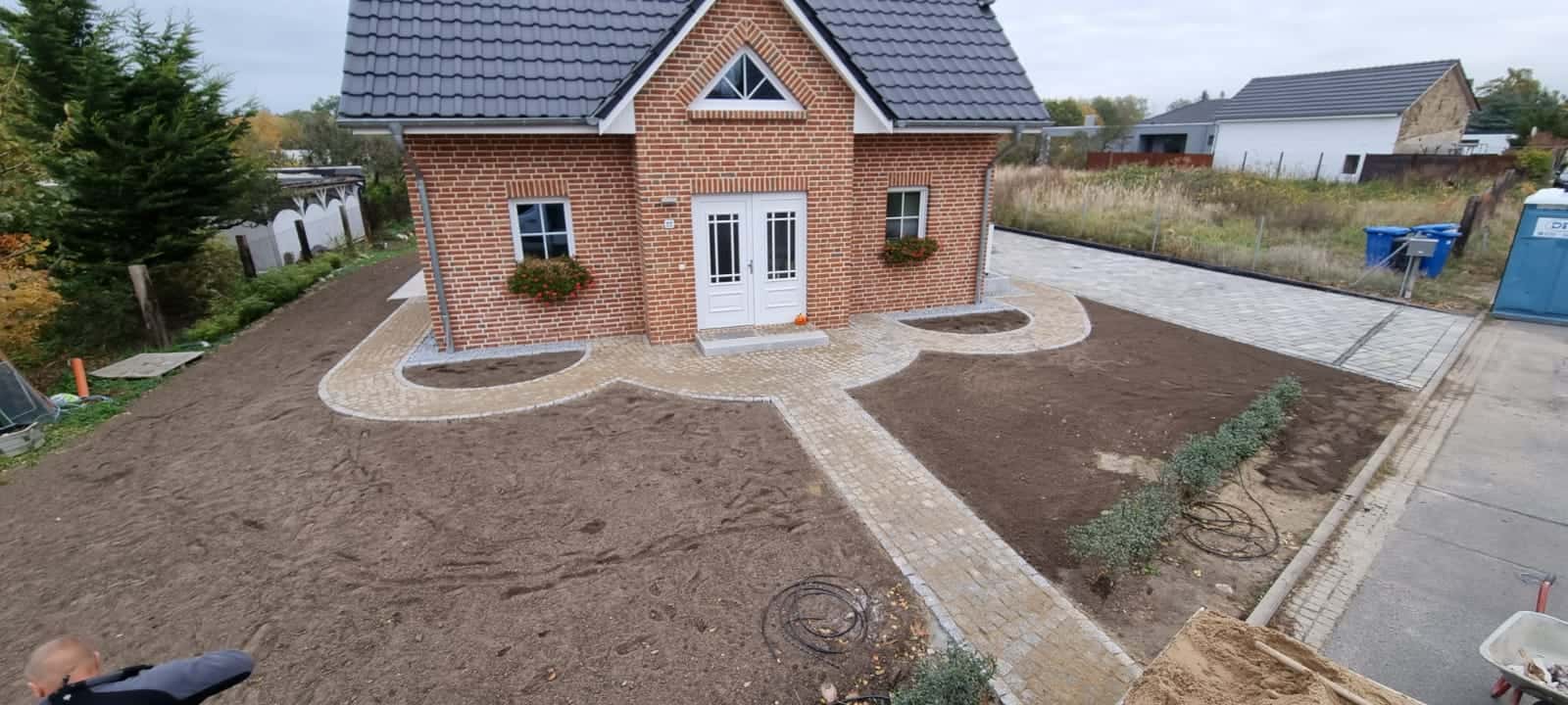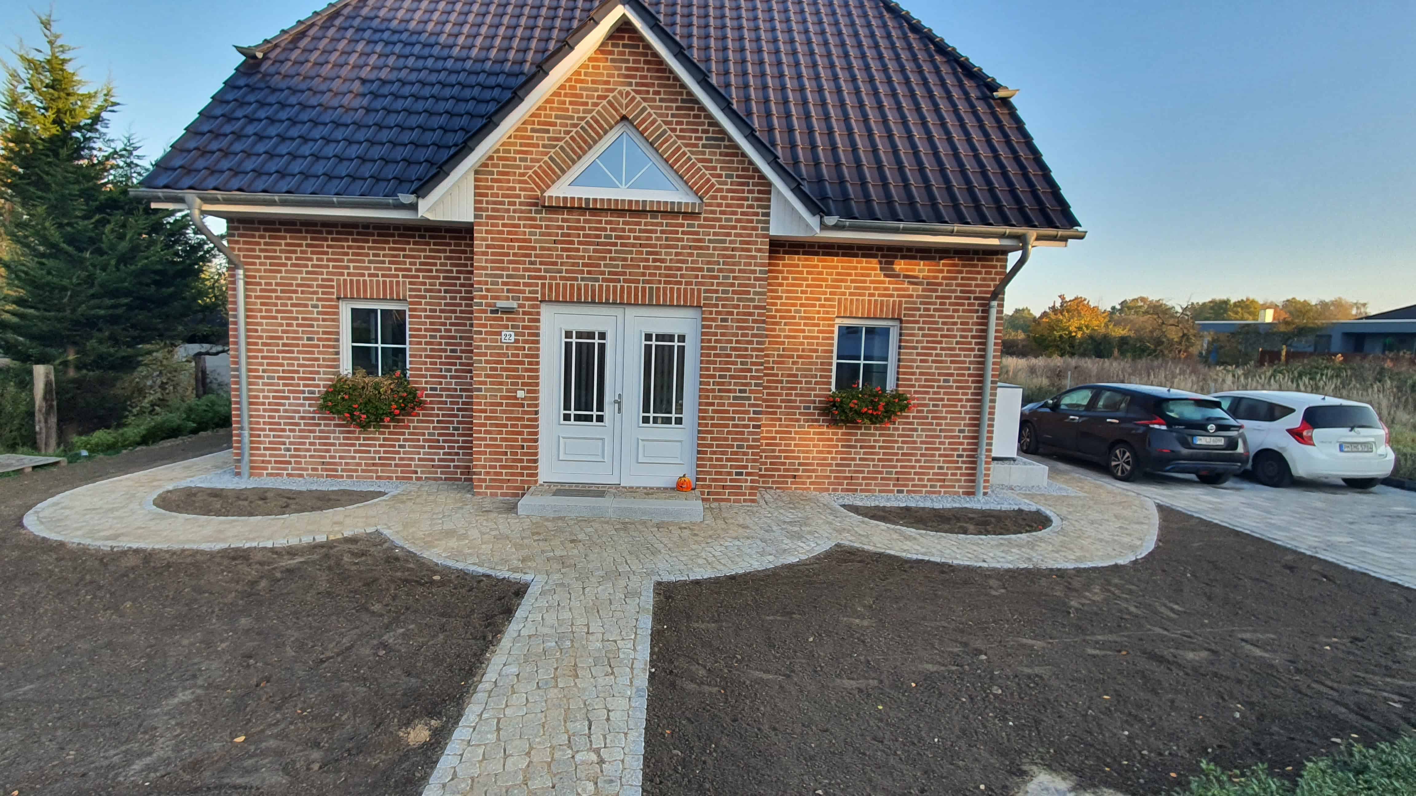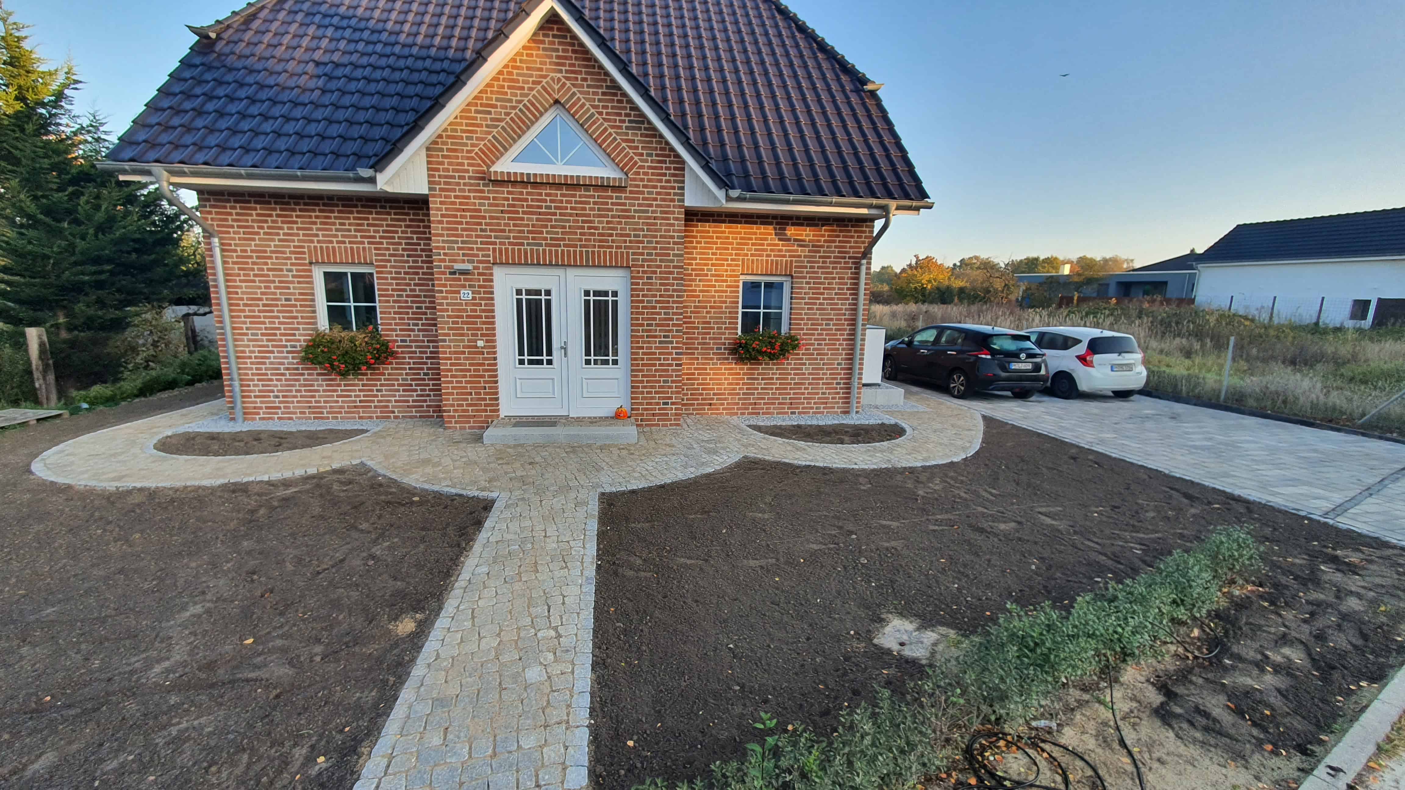 Für ein Einfamilienhaus mit Klinkerfassade in Werder an der Havel haben wir eine Außenanlage realisiert, die Eleganz, Funktionalität und hochwertige Materialien perfekt miteinander verbindet.